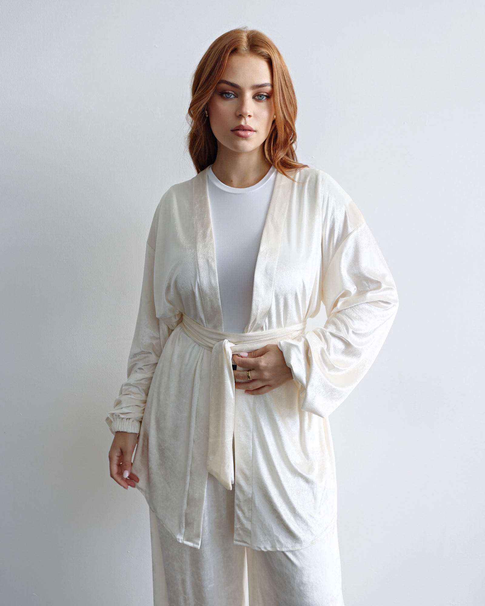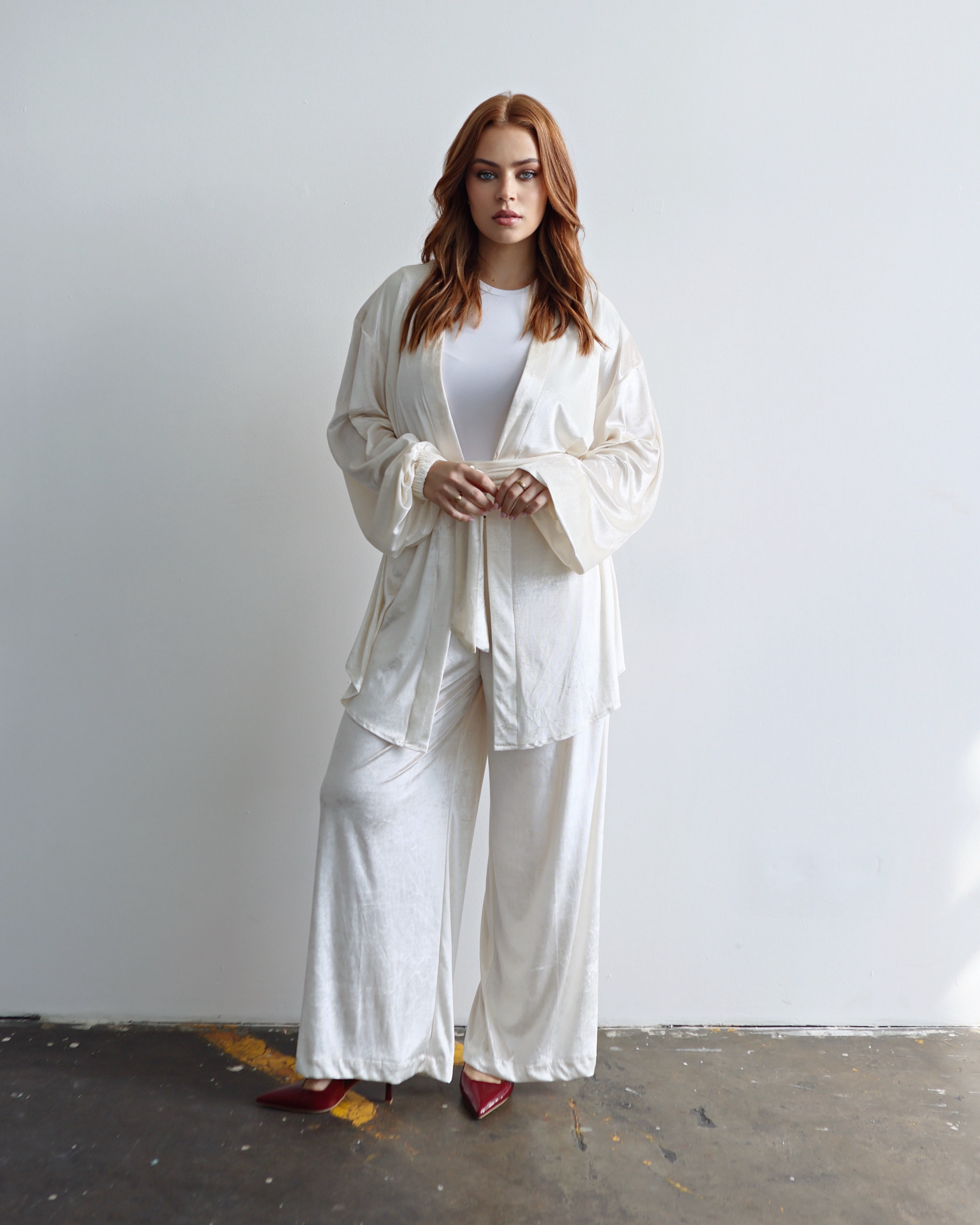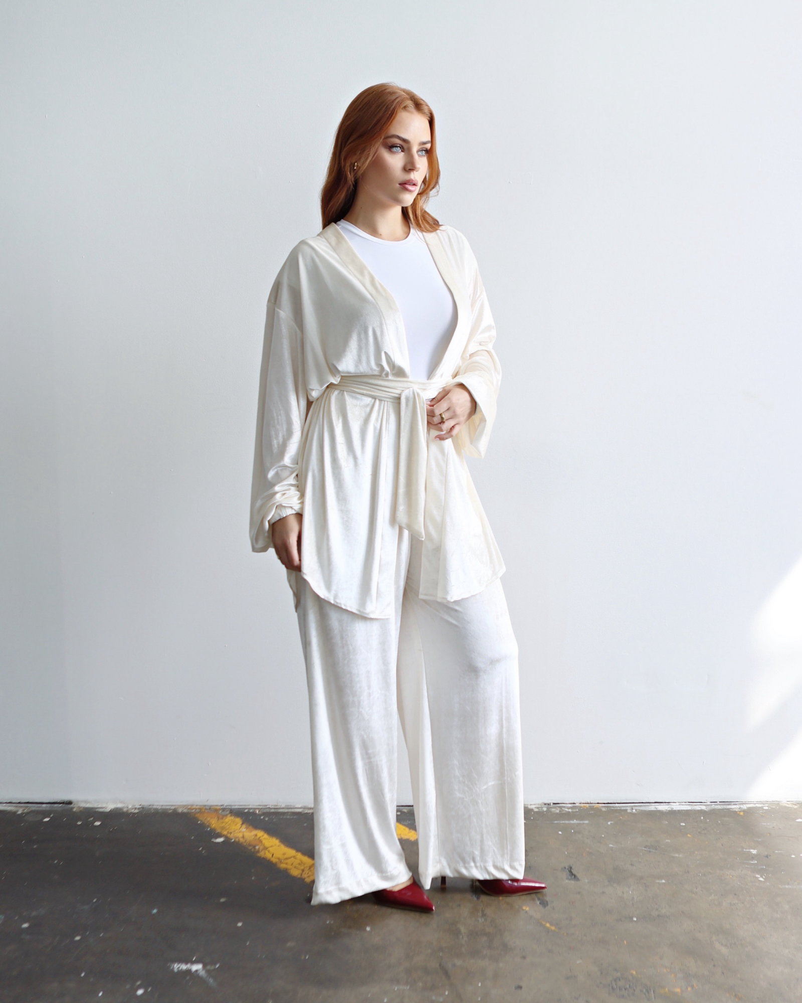 The Alaa Set is a stylish and comfortable two-piece ensemble that exudes effortless chic. Featuring a wide-leg pant design, this set offers a relaxed and flowy silhouette perfect for laid-back days or dressed-up evenings. The oversized top provides a flattering, relaxed fit, while the detachable tie belt allows you to adjust it for a more fitted look. Crafted from soft, breathable fabric, the Alaa Set ensures both comfort and style, making it a versatile addition to any wardrobe.